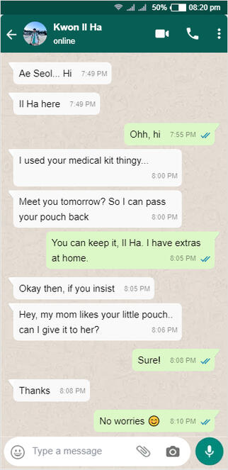 Il-ha, on the other hand, was still staring at the girl in disbelief.Ae seol caught sight of Il-ha’s unrelenting stare and immediately handed him a small cute white bag."What's this?" he asked."It's like a medical kit. My grandmother always packs it for me in case I need it. I tend to be clumsy sometimes. But I don't need it today so you can have it. Your cut seems quite serious. Did you fall?" Ae seol tried a little bit too hard to hide her frowns.Once again, Il-ha was left without words. Well, this is new."Ae seol.. you're unexpectedly… very caring. Mann, I wish the rest of our classmates are like you. And you’re so right for that. We didn’t fight. Il-ha actually fell off a bike today. Our benevolent Mr. Il-ha had this sudden outburst of hero-moment and rescued a puppy from a bunch of stupid kids. And you know what we got? We got chased by its mother instead. That’s when I lose control and accidentally threw Il-ha out of his seat." explained Hee Rak.“Oh, that sounds bad. I hope your wounds heal soon, Il-ha. You can keep the bag. I have another spare one at home. You seem like a careless person too.” She smiled innocently, looking at Il-ha— who naturally deemed as a danger to others. But not to her."Thank you Ae seol. I appreciate it.", was all Il-ha could respond."No problem. I was just trying to look out for my classmates. See you guys tomorrow." Ae seol made her way out of the classroom.Hee Rak joyously bid her farewell. As soon as she was out of sight, he looked at Il-ha and noticed that his sole companion was looking all perplexed. He assumed it was because of the incident with Yeong Hoon."Yaa... you don't need to worry about him. We already got our papers thanks to Ae seol. Let it go already."Il ha was in fact, more intrigued by Ae seol’s behavior. He was immensely taken aback by the fact that someone as reserved, compliant and diligent as her would go through such trouble for them. She was also the first to be genuinely concerned of his injuries. Honestly, Il ha was still deeply unsettled by Yeong Hoon and it somewhat had changed his view on the nerds but.. not for Ae seol... yep, Ae seol is an exception.